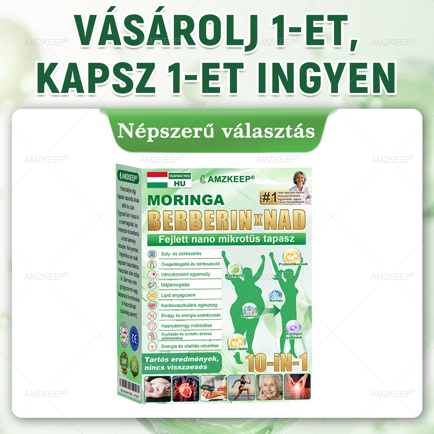 AMZKEEPÂź Moringa + Berberin Ă NAD+ 10-az-1-ben fejlett nano mikrotƱs tapasz: 98%-os felszĂvĂłdĂĄs, ĂĄtalakĂtja a testsĂșlyt, a mĂĄj, a bĂ©l Ă©s a bĆr egĂ©szsĂ©gĂ©t.